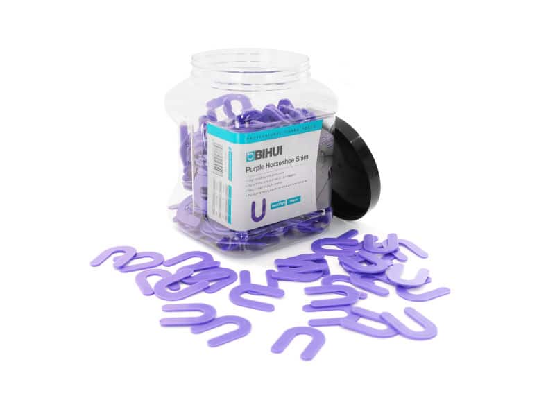 The Bihui 2mm Horseshoe Shims are reusable plastic spacers which are both easy to install and remove. This product is sold in tubs of 350. Available in sizes 2mm and 3mm. These are usable for both horizontal and vertical tile installation.