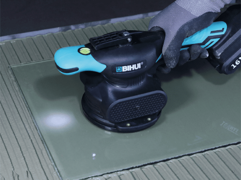 This cordless vibration tile beater is great for ensuring adhesive coverage on large format floor tiles by applying adhesive evenly due to vibration. The level indicator on the handle also shows when the tiles are flat and level across all sides.