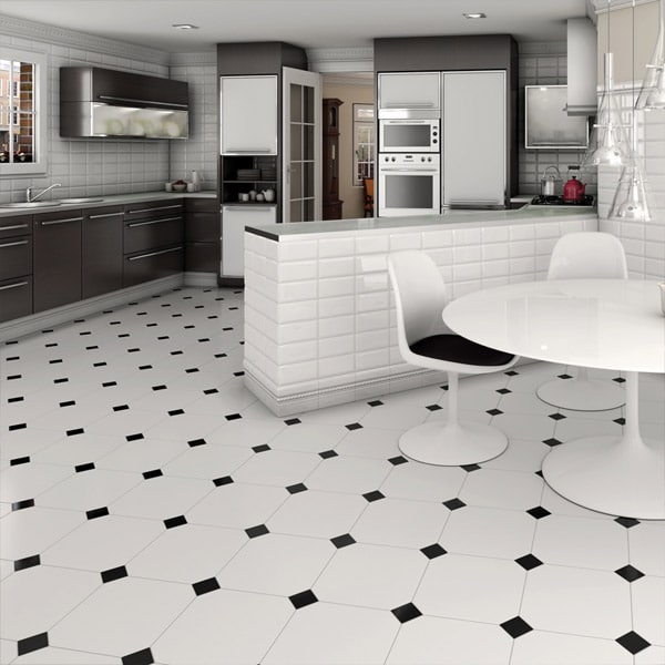 Octagon tiles for floor & wall use in a classic 316x316mm size. These high quality ceramic tiles have a satin finish and are completed with a black taco insert. These are by far our most popular octagonal tiles due to the size and finish. Perfect for giving kitchens, bathrooms and dining areas that classic Victorian style look at an affordable price!