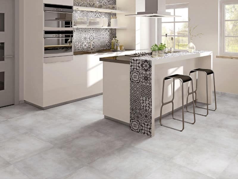 Flow White offers the classic simplicity of white floors tiles coupled with a concrete effect finish.