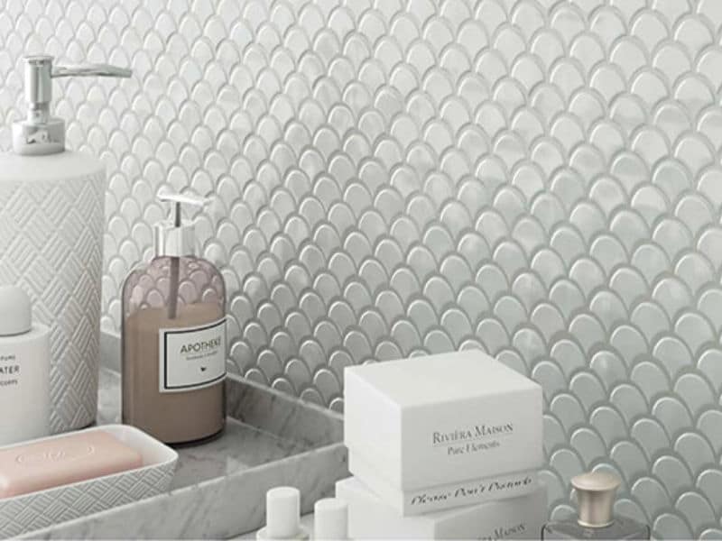 These fan tiles are gaining popularity once again, and we can see why!  The glossy white seems to have endless appeal – especially when hit by the light.