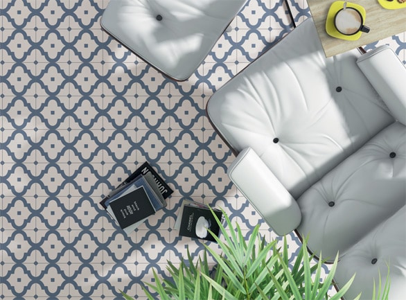 Our Palmette Amber offers a classic off white background with a delightful light light blue pattern. Also, being made of highly durable Spanish porcelain, it is ideal for most areas of your home. This range offers a unique pattern which can create a stunning effect when they are laid in larger areas, whilst also lightening up smaller areas.