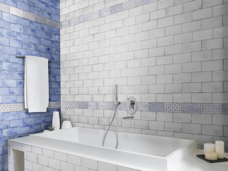 Our Vita blanco brick tile features an aged effect within their glaze that gives a beautiful effect, combined with the corresponding decor tiles really…