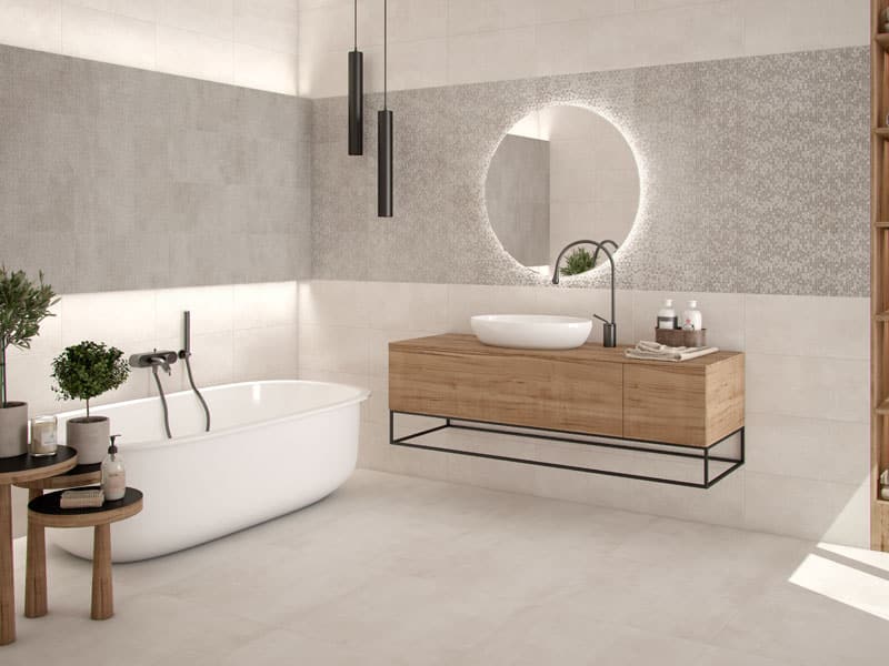 The Zen Feature Collection consists of three textured ceramic wall tiles in graphite, beige, and white. Each can be used in many different ways (the only limit is your creativity…) including as part of a mix and match session. Each feature tile has a corresponding plain tile.